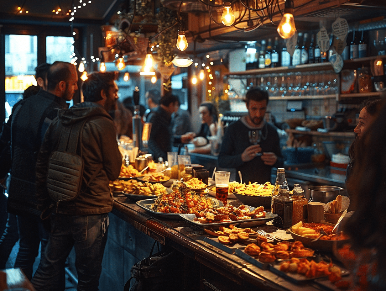Ces établissements, souvent discrets et chaleureux, proposent une richesse de petites bouchées savoureuses, parfaites pour accompagner un verre de vin ou une bière artisanale. L’ambiance y est toujours effervescente, rythmée par les discussions animées et les rires des convives.
